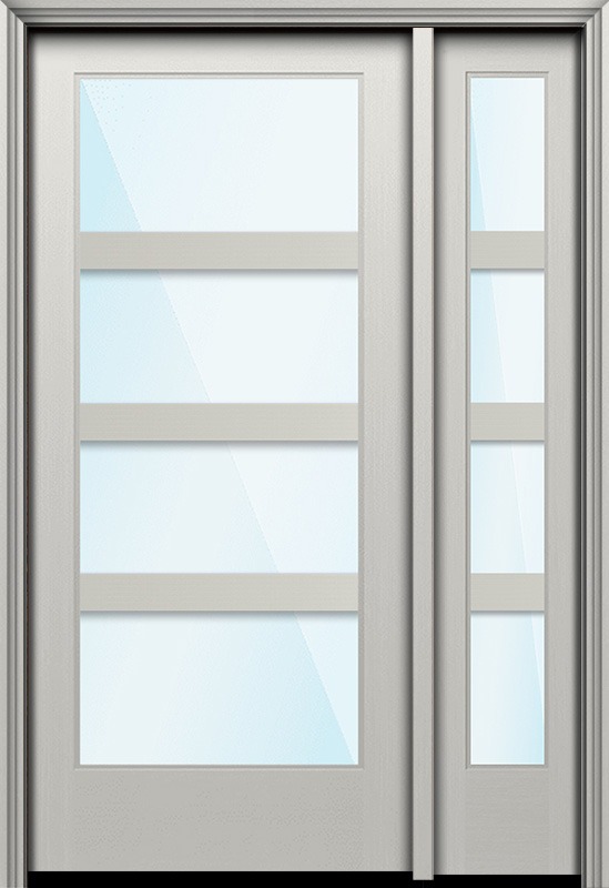 80" Full Lite 4 Lite Horizontal 3.5" SDL Nova 90 Modern Smooth Fiberglass Single Door, Sidelite