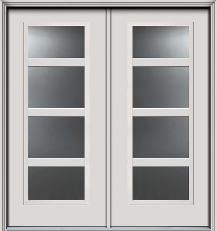 80" Full Lite, Horizontal 4 Lite SDL Contemporary Smooth Fiberglass Double Door, WBD Impact
