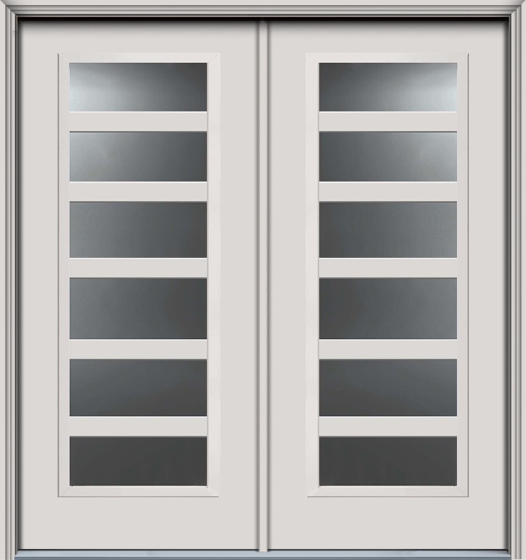 80" Full Lite, Horizontal 6 Lite SDL Contemporary Smooth Fiberglass Double Door, HVHZ Impact