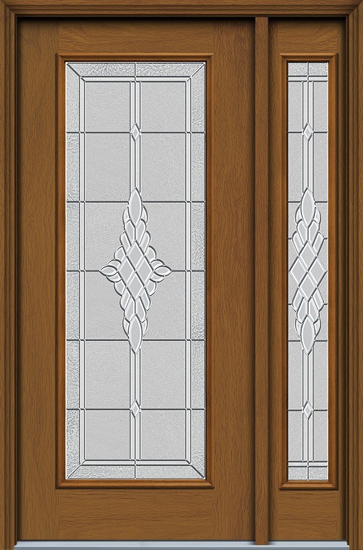 80" Grace Full Lite Woodgrain Fiberglass Door, Sidelite