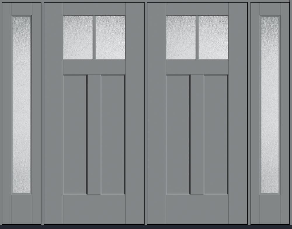 80" Granite Craftsman Top View 2 Lite 2 Panel Shaker SDL Flat 1-1/8" Smooth Flush-Glazed Fiberglass Double Door, Full Sidelites