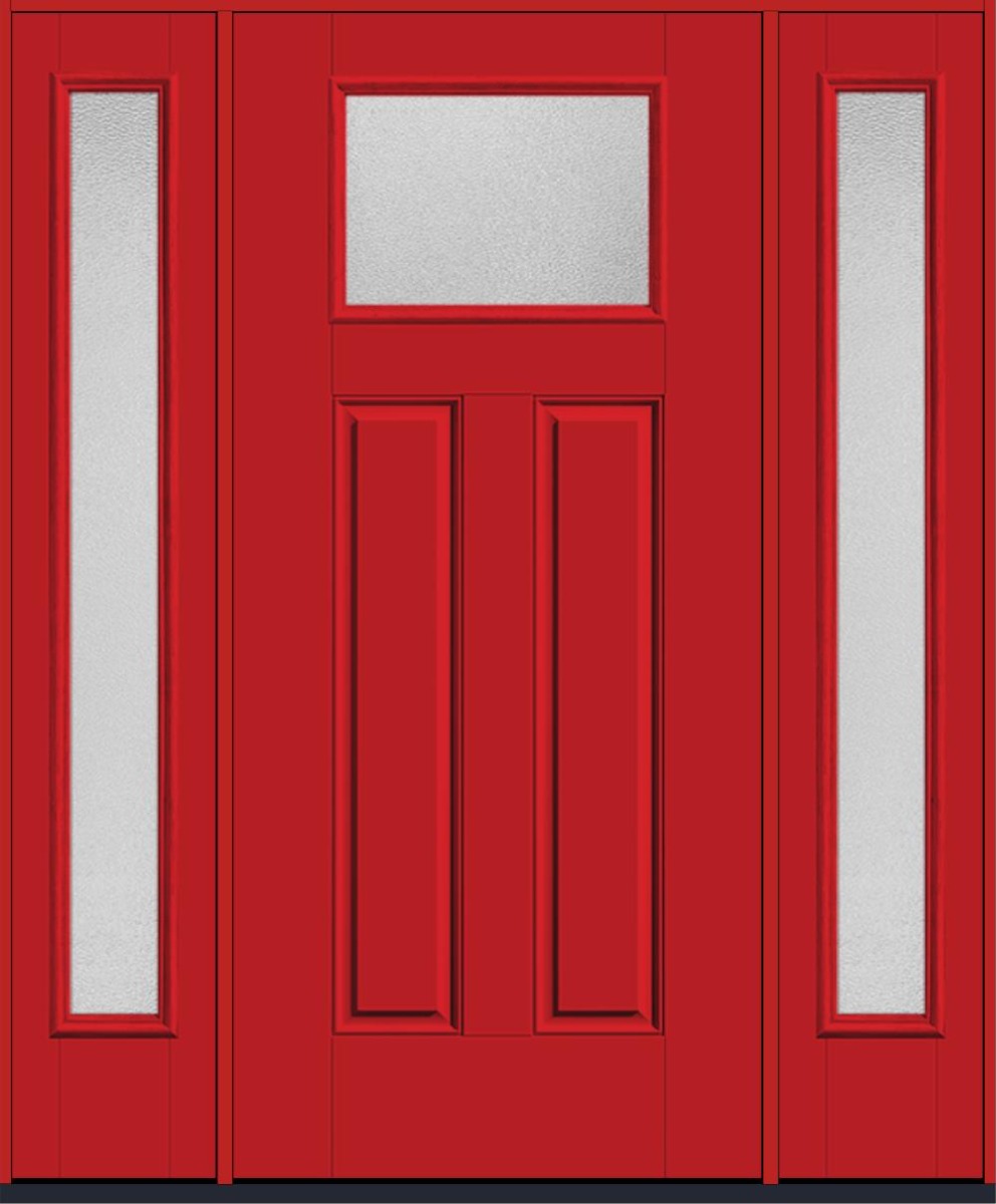80" Granite Craftsman Top View 2 Panel Smooth Fiberglass Single Door, Full Sidelites