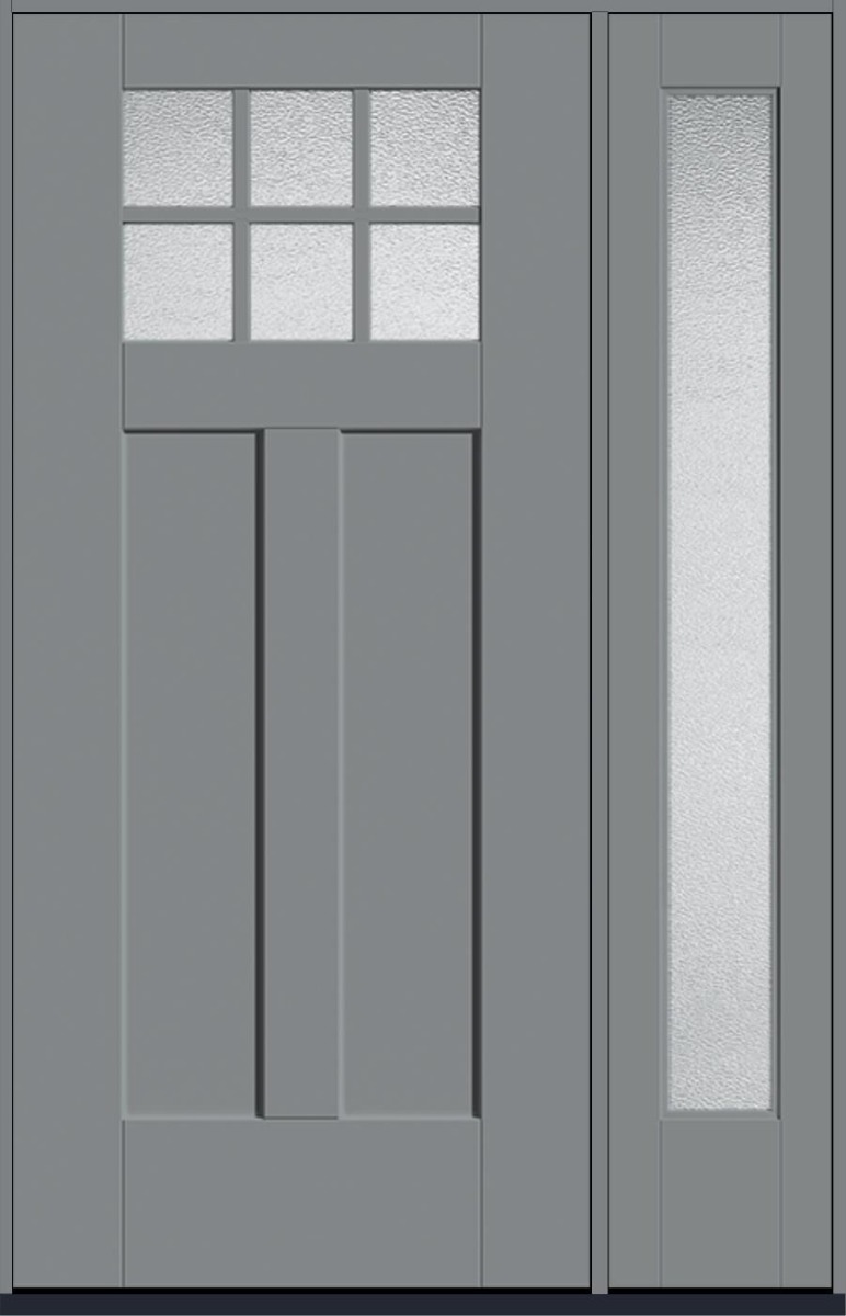 80" Granite Craftsman Top View 6 Lite 2 Panel Shaker SDL Flat 1-1/8" Smooth Flush-Glazed Fiberglass Single Door, Full Sidelite