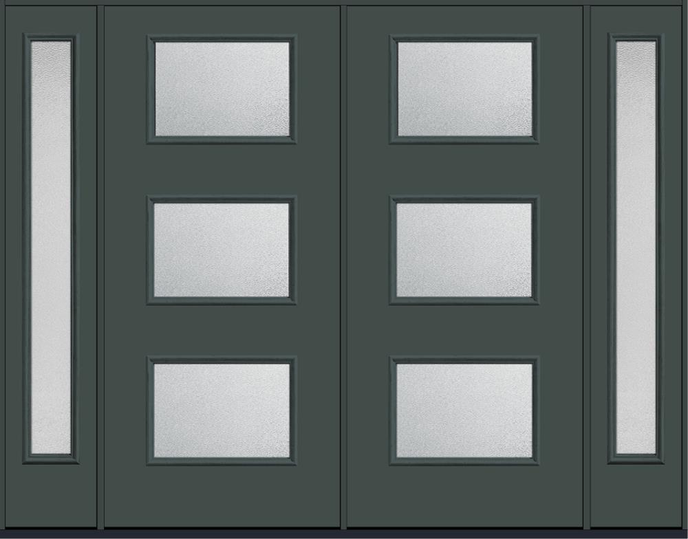 80" Granite Modern Pulse Ari 3-Lite Smooth Fiberglass Double Door, Full Sidelites