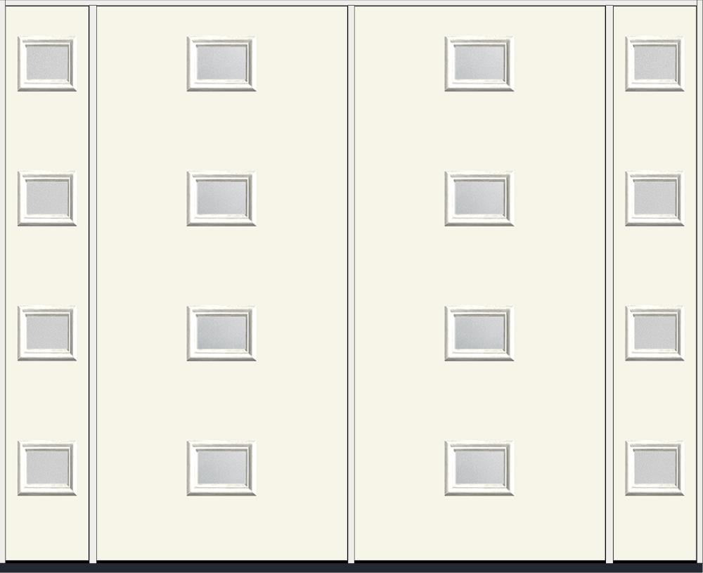 80" Granite Modern Pulse Echo 4-Lite Centered Smooth Fiberglass Double Door, Sidelites