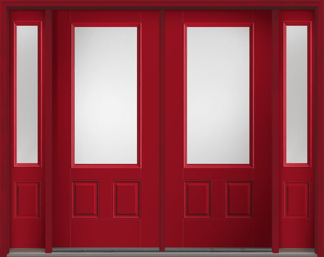 80" Low-E 3/4 Lite 2 Panel Smooth Fiberglass Double Door, Sidelites