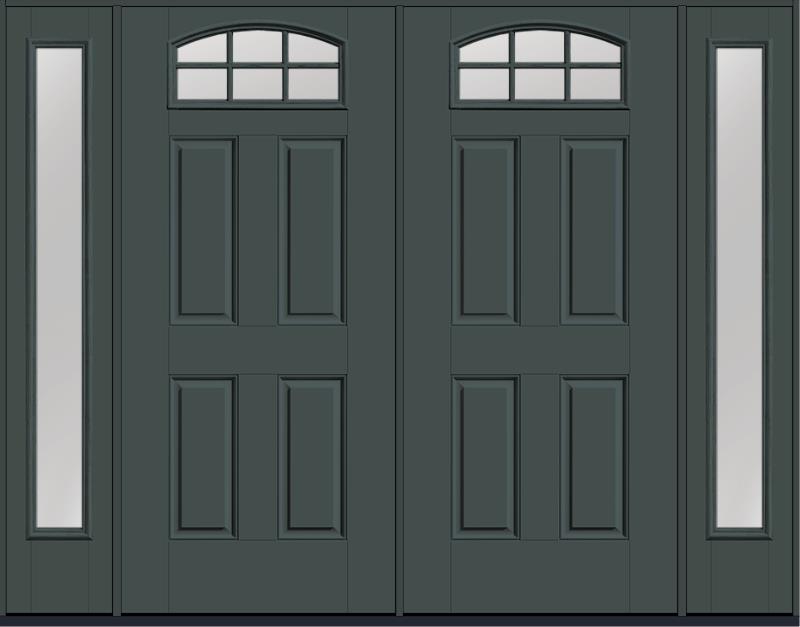 80" Low-E Camber Top 6 Lite 4 Panel Fixed Grilles Smooth Fiberglass Double Door, Sidelites