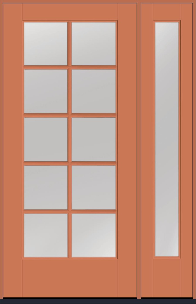 80" Low-E Colonial 10 Lite SDL Smooth Full Lite Flush-Glazed Fiberglass Single Door, Sidelite