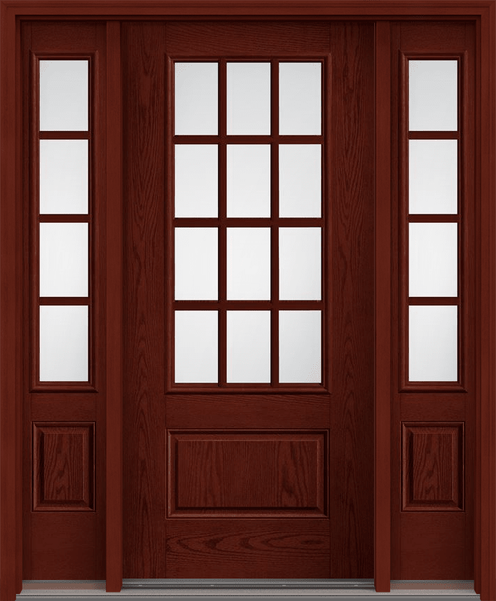 80" Low-E Colonial 12 Lite SDL Oak 3/4 Lite 1 Panel Fiberglass Single Door, Sidelites