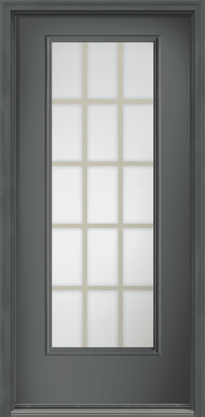 80" Low-E Colonial 15 Lite Flat Bar GBG Smooth Full Lite Fiberglass Single Door