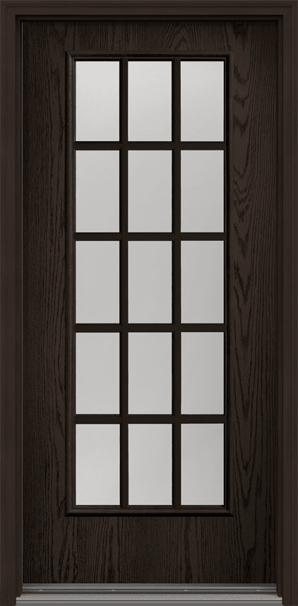 80" Low-E Colonial 15 Lite SDL Oak Full Lite Fiberglass Single Door