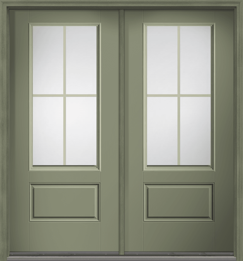 80" Low-E Colonial 4 Lite Contoured GBG Smooth 3/4 Lite 1 Panel Fiberglass Double Door