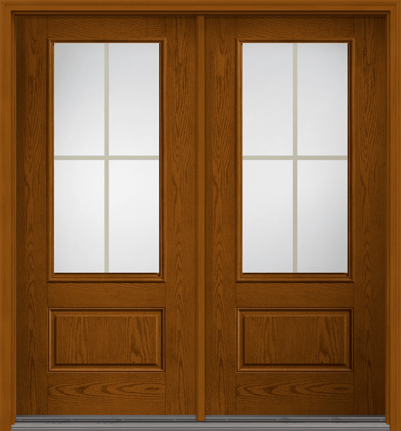 80" Low-E Colonial 4 Lite Flat Bar GBG Oak 3/4 Lite 1 Panel Fiberglass Double Door