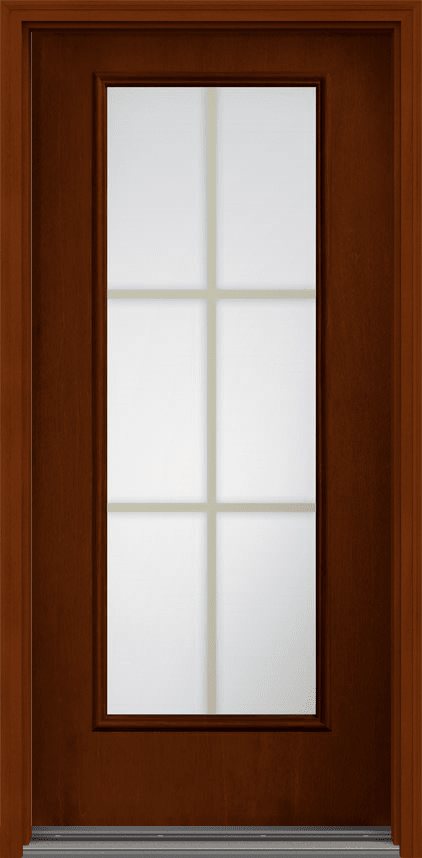 80" Low-E Colonial 6 Lite Flat Bar GBG Mahogany Full Lite Fiberglass Single Door