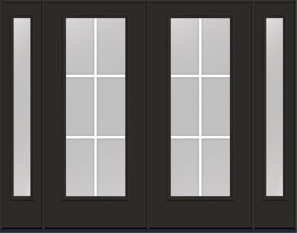 80" Low-E Colonial 6 Lite Flat Bar GBG Smooth Full Lite Fiberglass Double Door, Sidelites