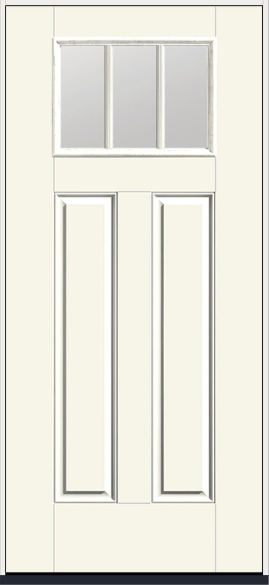 80" Low-E Craftsman 3 Lite 2 Panel SDL Smooth Fiberglass Single Door
