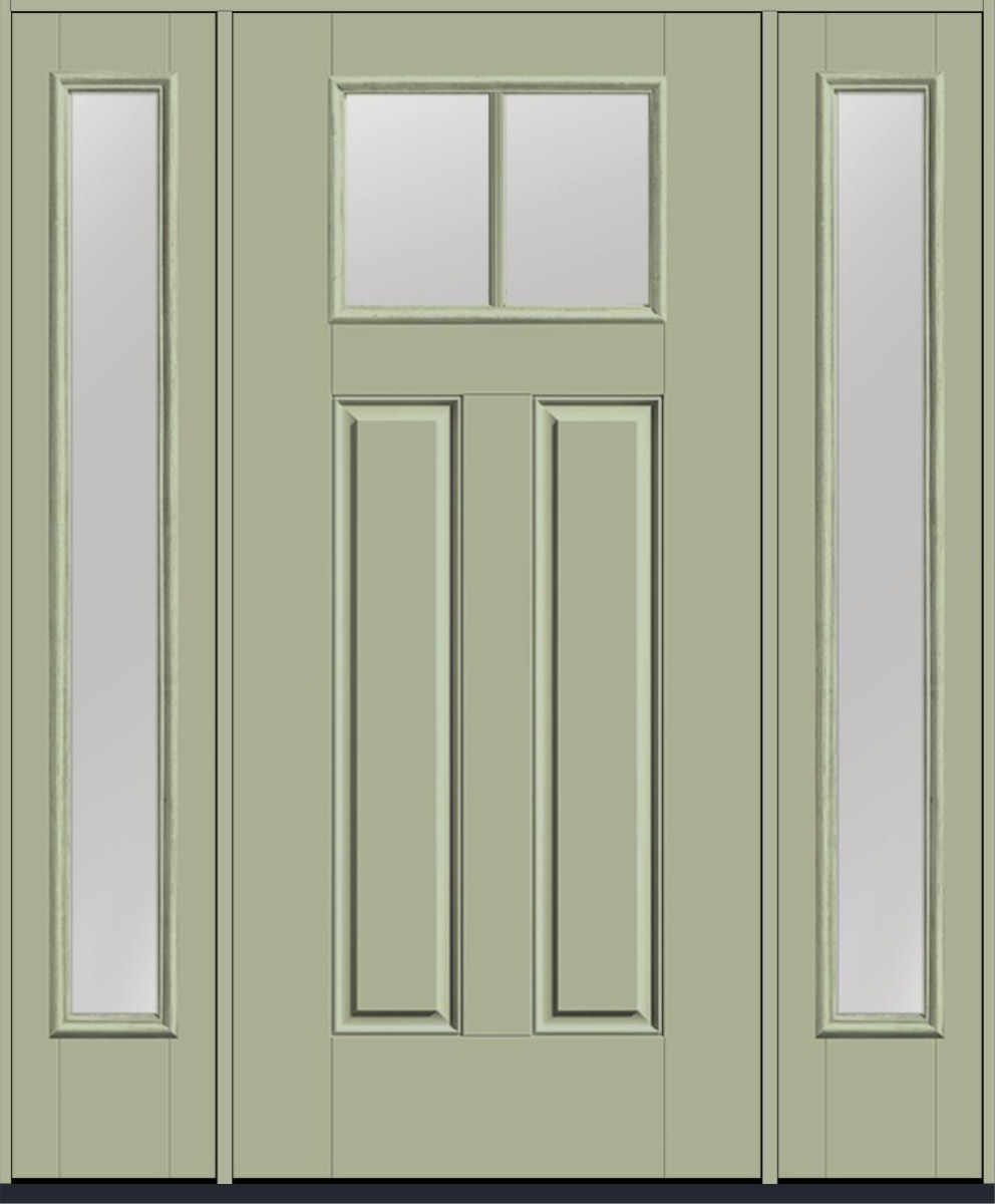 80" Low-E Craftsman Top View 2 Lite 2 Panel SDL Smooth Fiberglass Single Door, Full Sidelites