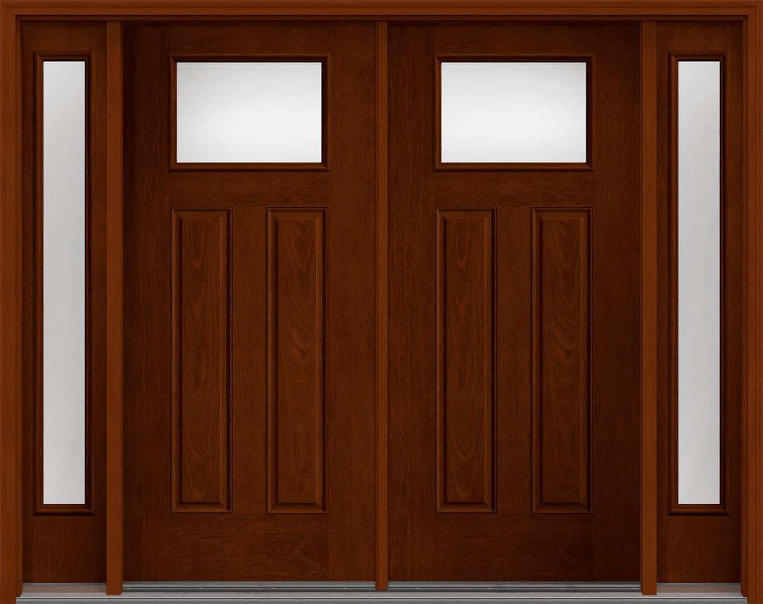 80" Low-E Craftsman Top View 2 Panel Mahogany Fiberglass Double Door, Sidelites