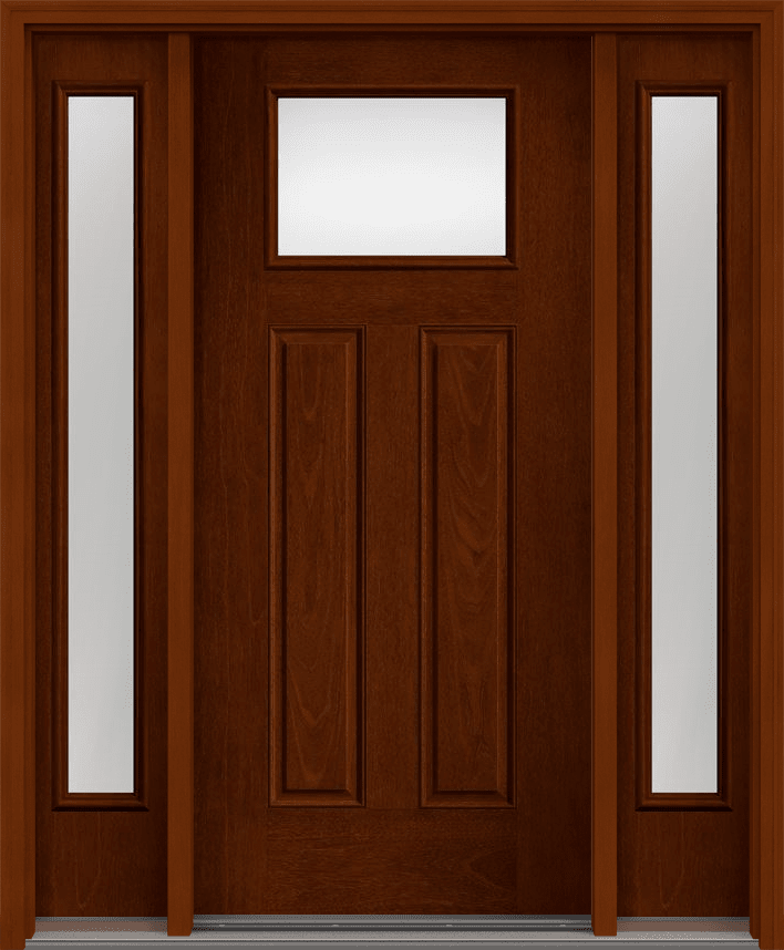 80" Low-E Craftsman Top View 2 Panel Mahogany Fiberglass Single Door, Sidelites