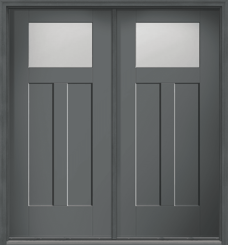 80" Low-E Craftsman Top View 2 Panel Shaker Smooth Flush-Glazed Fiberglass Double Door