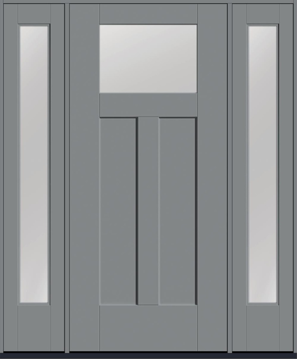 80" Low-E Craftsman Top View 2 Panel Shaker Smooth Flush-Glazed Fiberglass Single Door, Full Sidelites