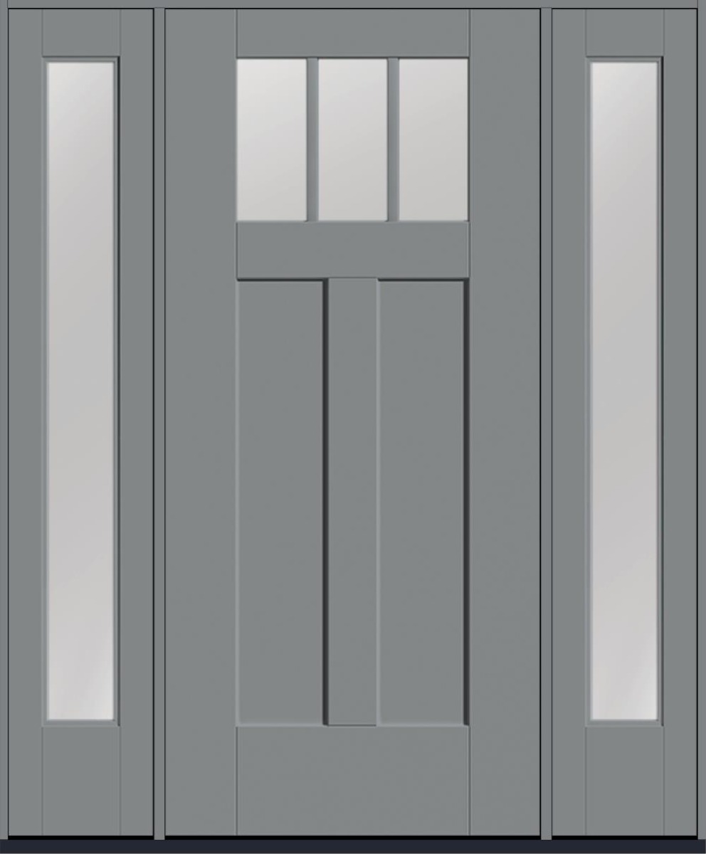 80" Low-E Craftsman Top View 3 Lite 2 Panel Shaker SDL Flat 1-1/8" Smooth Flush-Glazed Fiberglass Single Door, Full Sidelites
