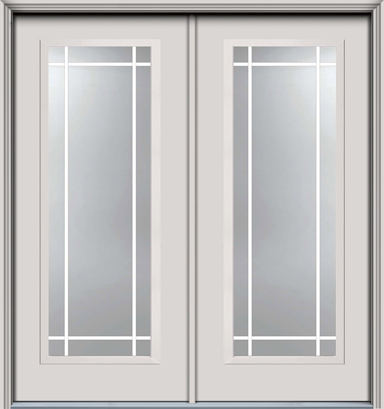 80" Low-E Prairie Full Lite GBG Smooth Fiberglass Double Door, WBD Impact