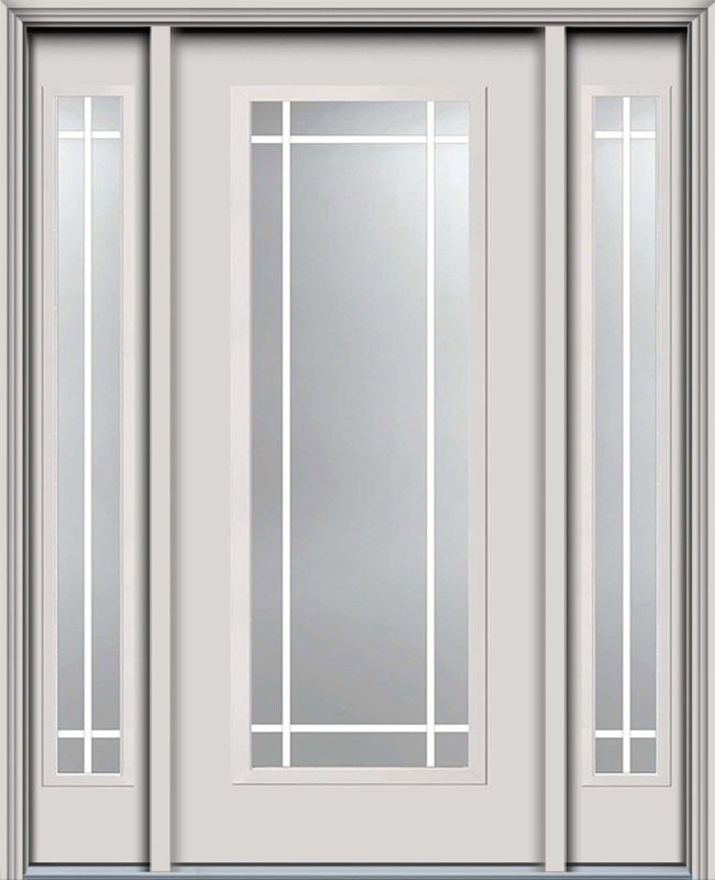 80" Low-E Prairie Full Lite GBG Smooth Fiberglass Single Door, Sidelites, WBD Imapct