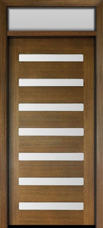 80" Mahogany Carlo Horizontal 7 Lite TDL Contemporary Modern Single Door & Rec Transom