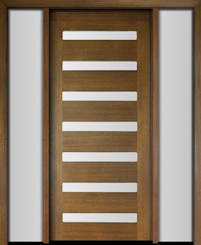 80" Mahogany Carlo Horizontal 7 Lite TDL Contemporary Modern Single Door/2Sidelite