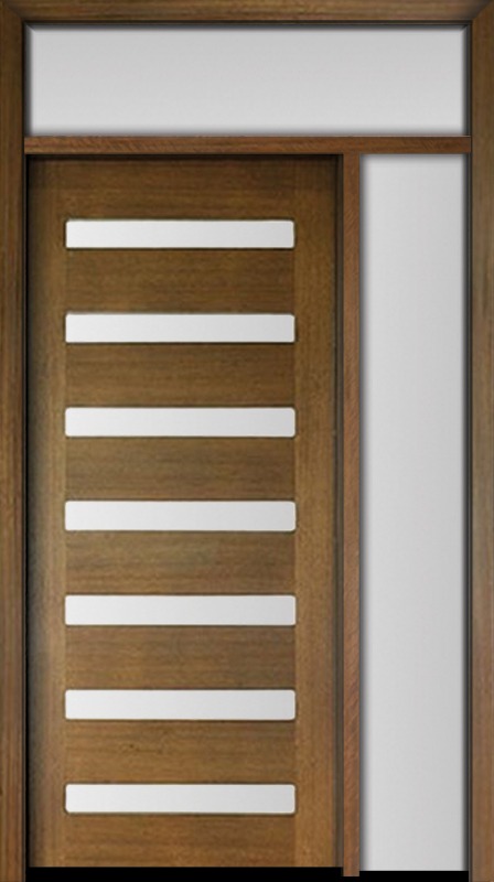 80" Mahogany Carlo Horizontal 7 Lite TDL Contemporary Modern Single Door/Sidelite & Rec Transom