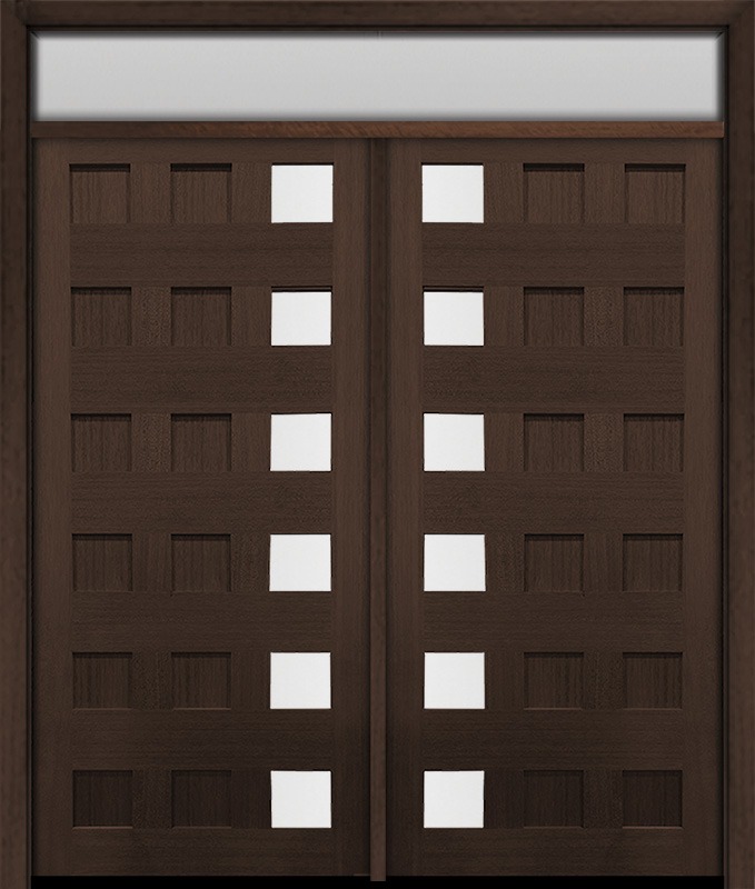 80" Mahogany Carlo Square 6 Lite TDL Contemporary Modern Double Door & Rec Transom