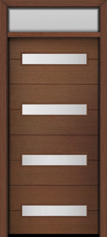80" Mahogany Luca Horizontal 4 Lite Contemporary Modern Single Door & Rec Transom