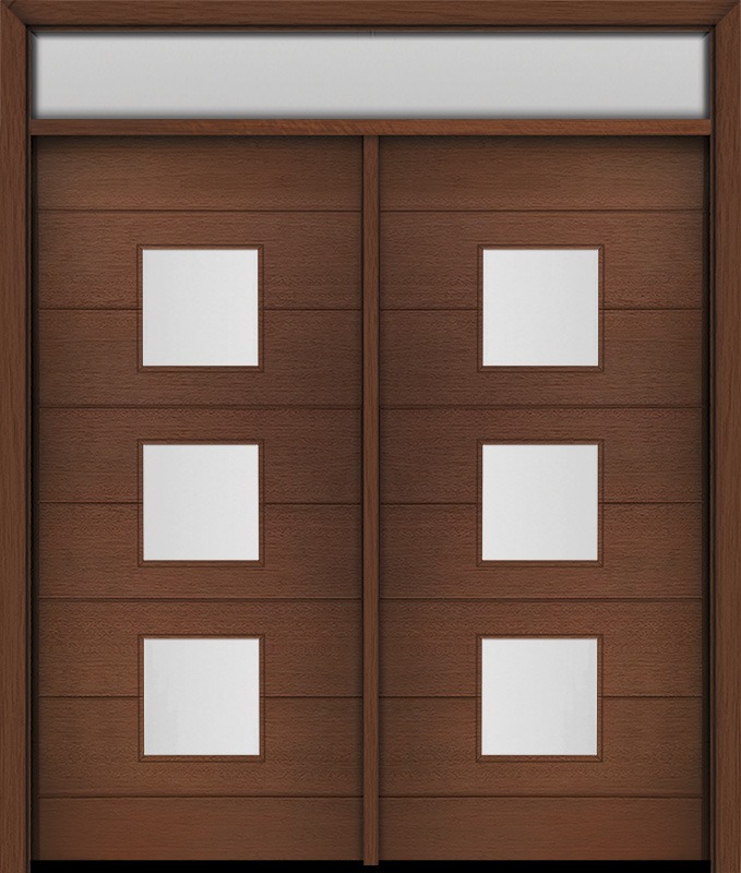 80" Mahogany Luca Square 3 Lite Contemporary Modern Double Door & Rec Transom