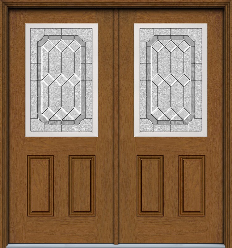 80" Majestic 1/2 Lite 2 Panel Woodgrain Fiberglass Double Door, WBD Impact