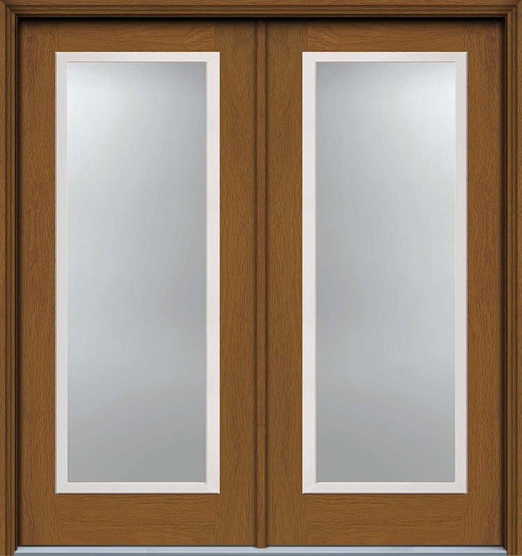 80" Narrow Full Lite Contemporary Woodgrain Fiberglass Double Door, HVHZ Impact