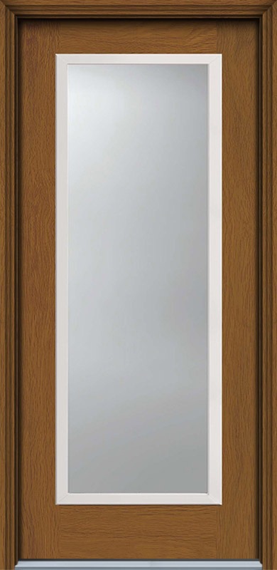 80" Narrow Full Lite Contemporary Woodgrain Fiberglass Single Door, HVHZ Imapct