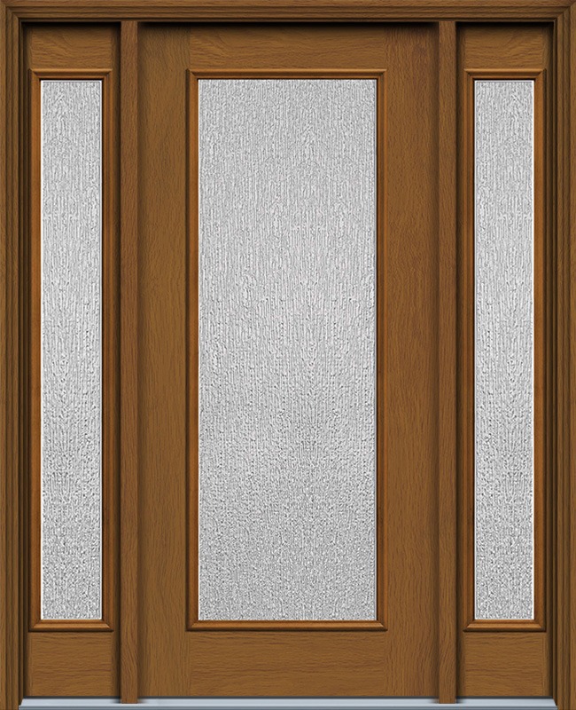80" Rain Full Lite Woodgrain Fiberglass Door, Sidelites, WBD Non-Impact