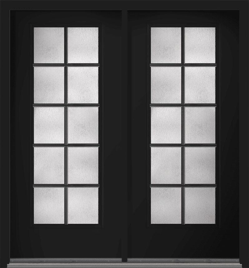 80" Rainglass Colonial 10 Lite SDL Smooth Full Lite Fiberglass Double Door