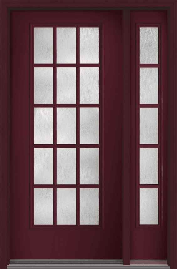 80" Rainglass Colonial 15 Lite SDL Smooth Full Lite Fiberglass Single Door, Sidelite