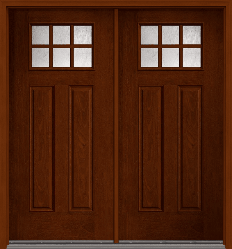 80" Rainglass Craftsman 6 Lite 2 Panel SDL Mahogany Fiberglass Double Door