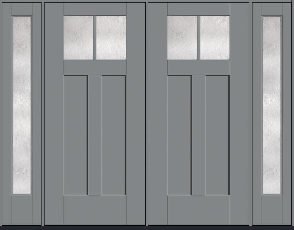 80" Rainglass Craftsman Top View 2 Lite 2 Panel Shaker SDL Flat 1-1/8" Smooth Flush-Glazed Fiberglass Double Door, Full Sidelites