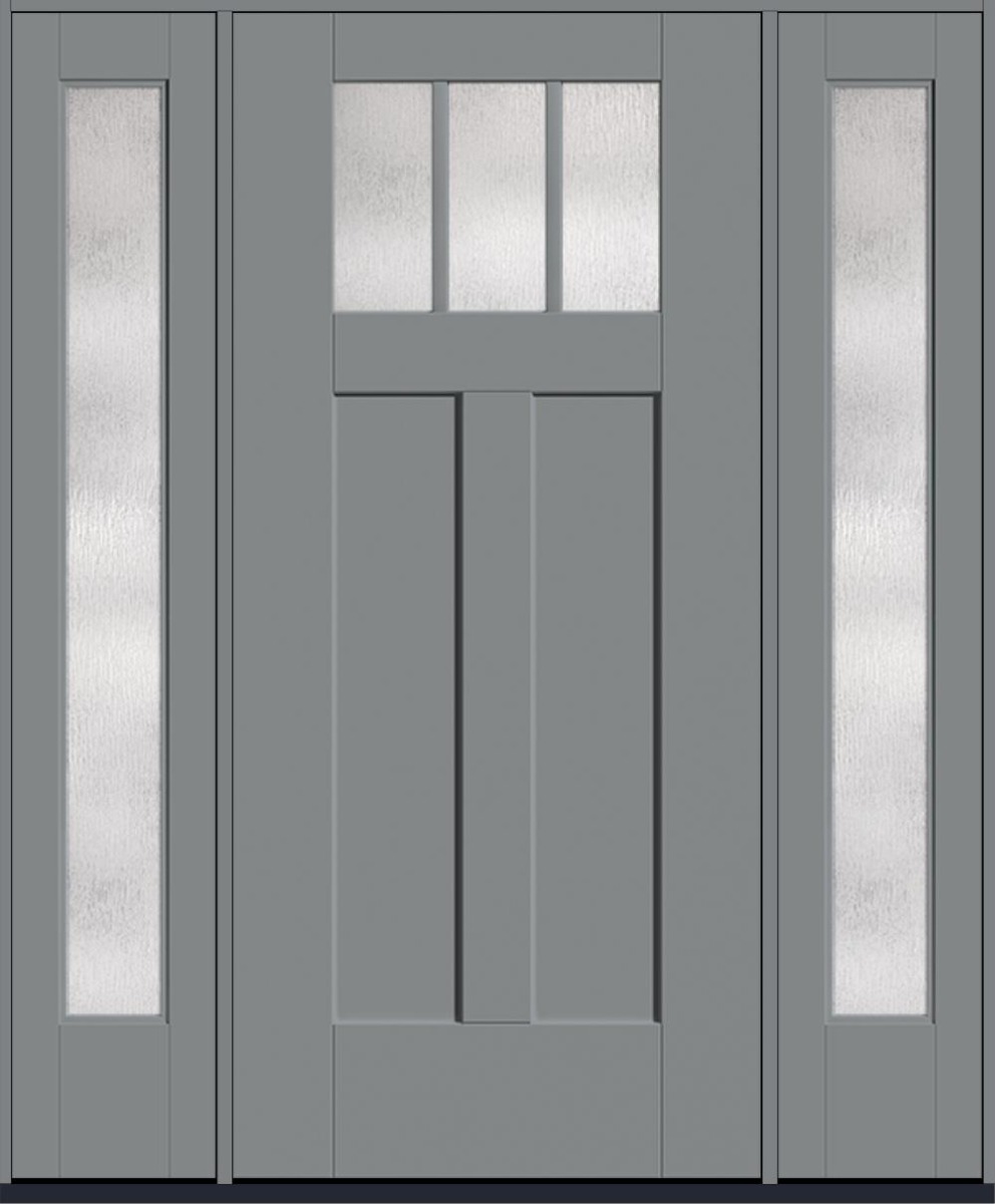 80" Rainglass Craftsman Top View 3 Lite 2 Panel Shaker SDL Flat 1-1/8" Smooth Flush-Glazed Fiberglass Single Door, Full Sidelites