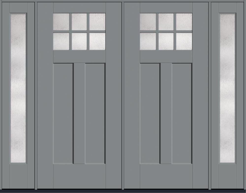 80" Rainglass Craftsman Top View 6 Lite 2 Panel Shaker SDL Flat 1-1/8" Smooth Flush-Glazed Fiberglass Double Door, Full Sidelites