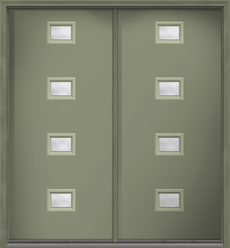 80" Rainglass Modern Pulse Echo 4-Lite Centered Smooth Fiberglass Double Door