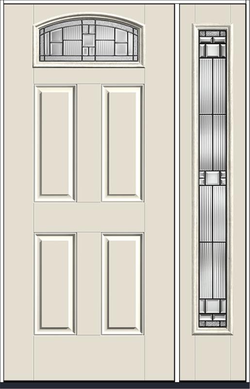 80" Saratoga Camber Top Lite 4 Panel Smooth Fiberglass Single Door, Sidelite