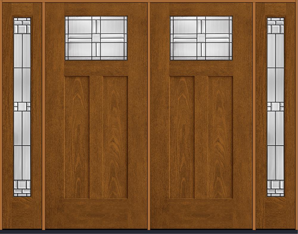 80" Saratoga Craftsman Top View 2 Panel Shaker Mahogany Flush-Glazed Fiberglass Double Door, Full Sidelites