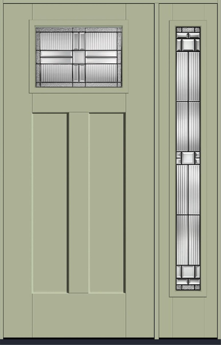 80" Saratoga Craftsman Top View 2 Panel Shaker Smooth Fiberglass Single Door, Full Sidelite