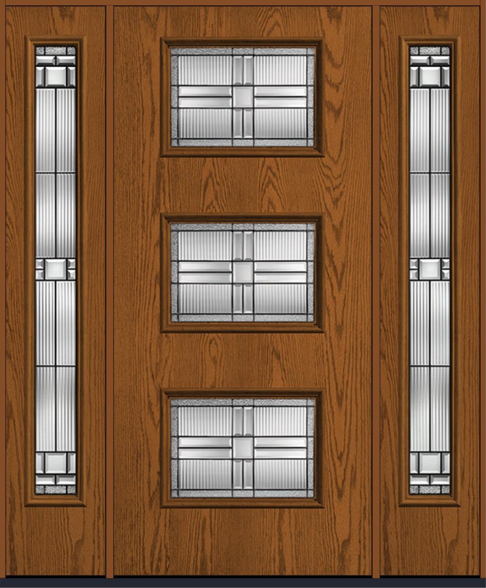 80" Saratoga Pulse Ari 3-Lite Oak Fiberglass Single Door, Full Sidelites