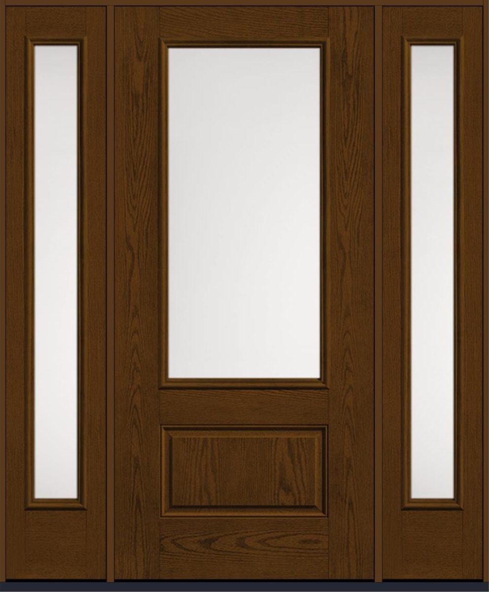 80" Satin Etch 3/4 Lite 1 Panel Oak Fiberglass Single Door, Full Sidelites
